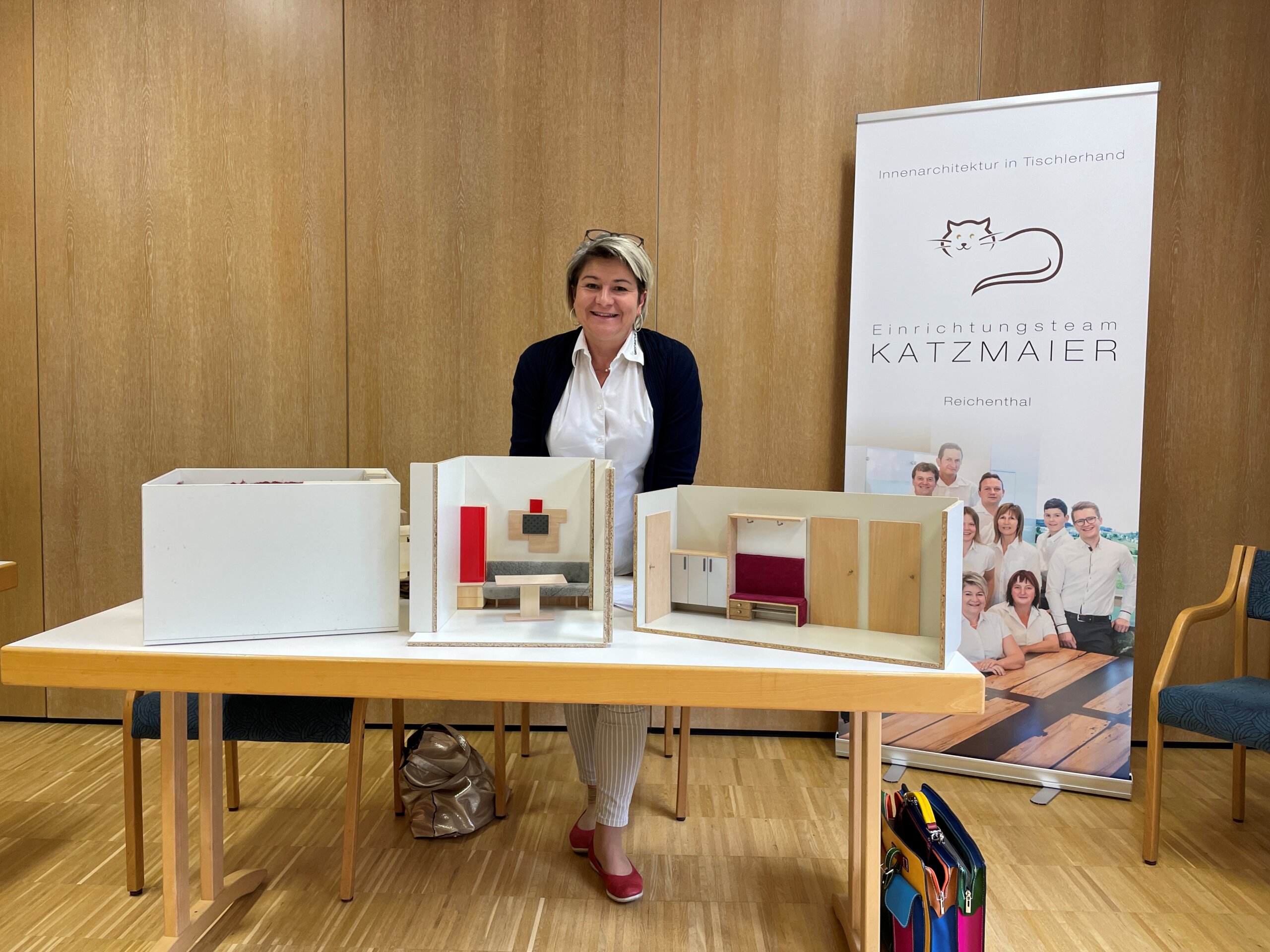 Anstelle von Entwurfsskizzen und Plänen fertigen wir Modelle der einzelnen Räume und Möbelstücke. Somit bekommen auch blinde Menschen einen ersten Eindruck von ihrer zukünftigen Einrichtung – wie hier auf diesem Bild sichtbar.