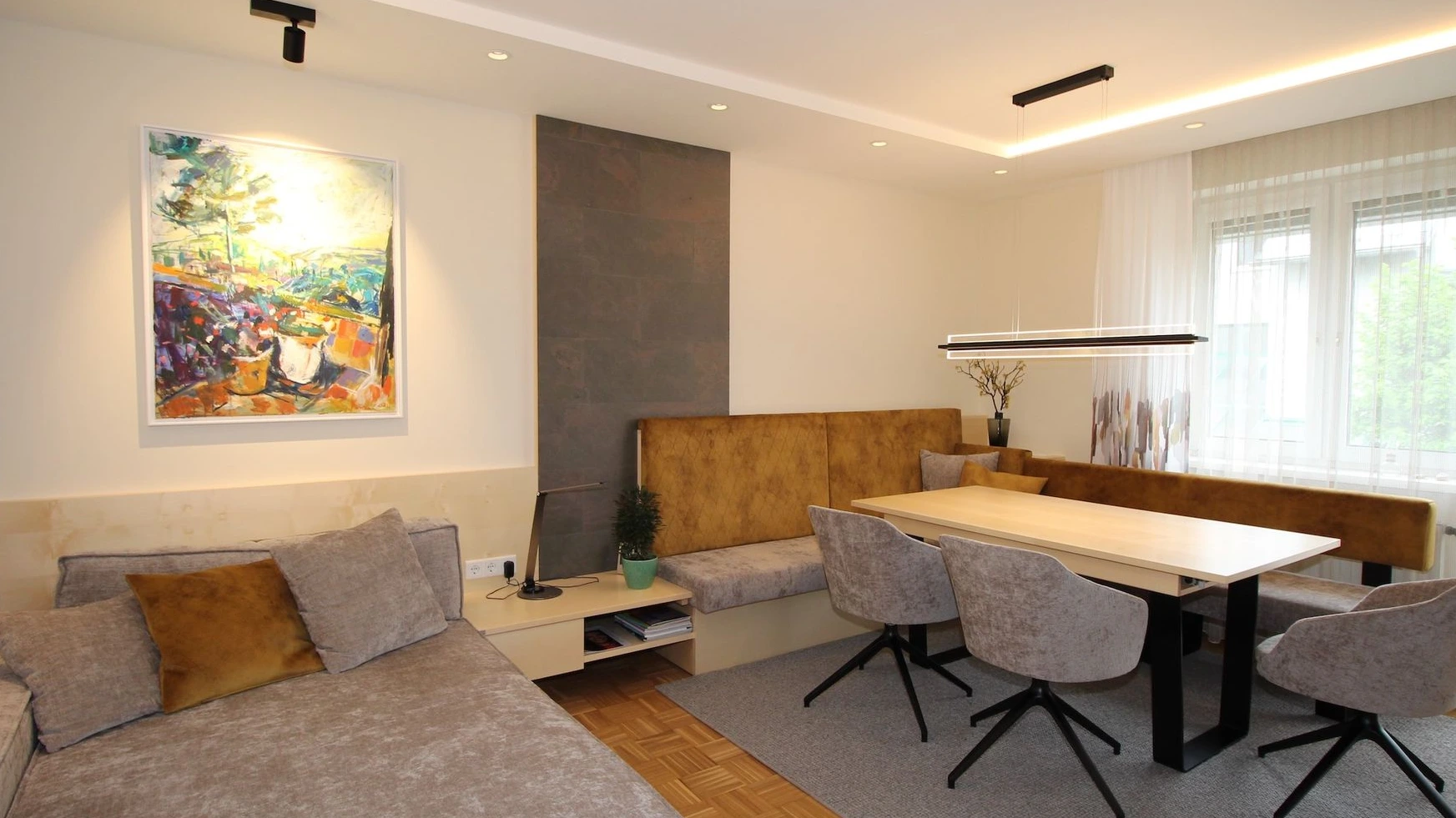 Nahtloser Übergang zum Wohnzimmer oder zur Küche (offener Essbereich).